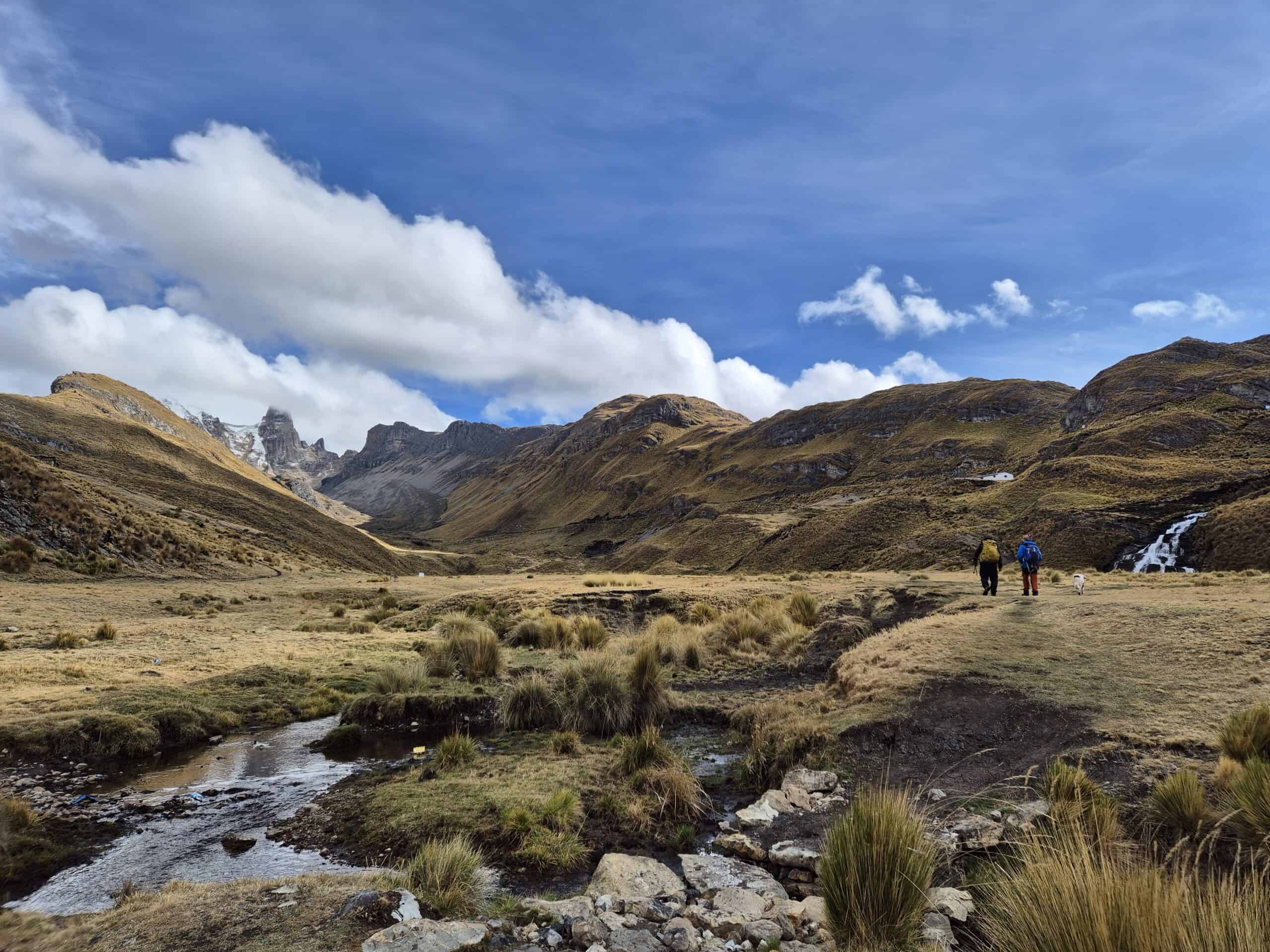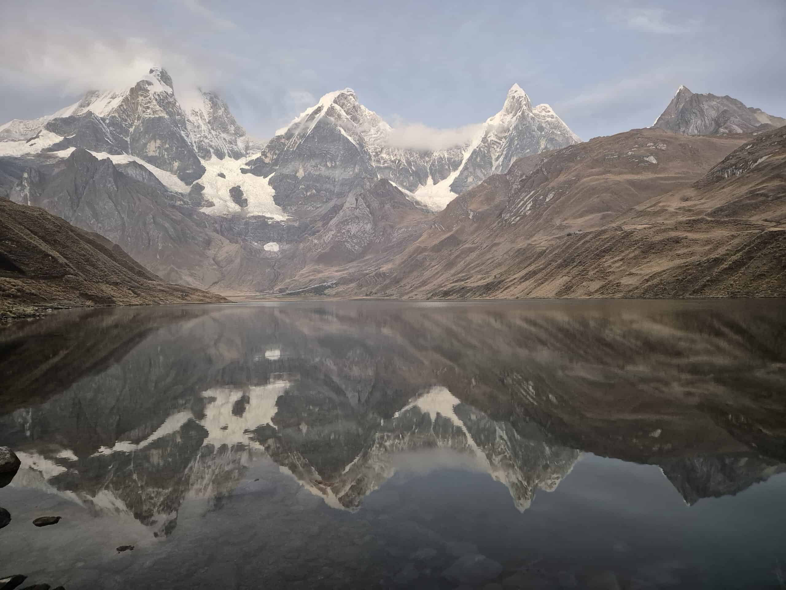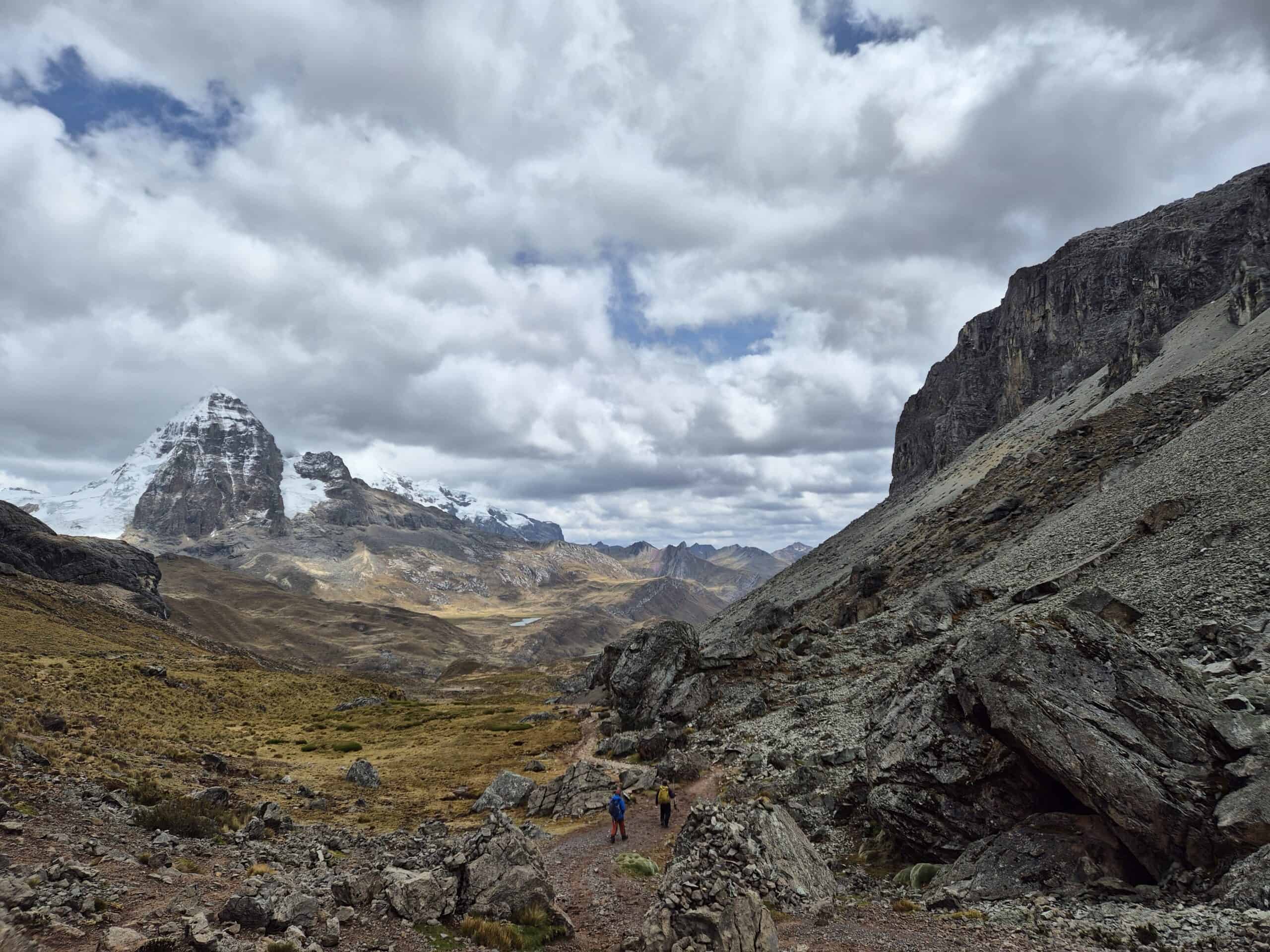 Vandaag passeren we enkele van de meest iconische uitzichtpunten van de hele route. Vanaf het Carhuacocha-meer heb je panoramisch zicht op de oostwanden van Yerupajá, Jirishanca, Silula en Savage. Dit is volgens velen het mooiste deel van de hele trekking.