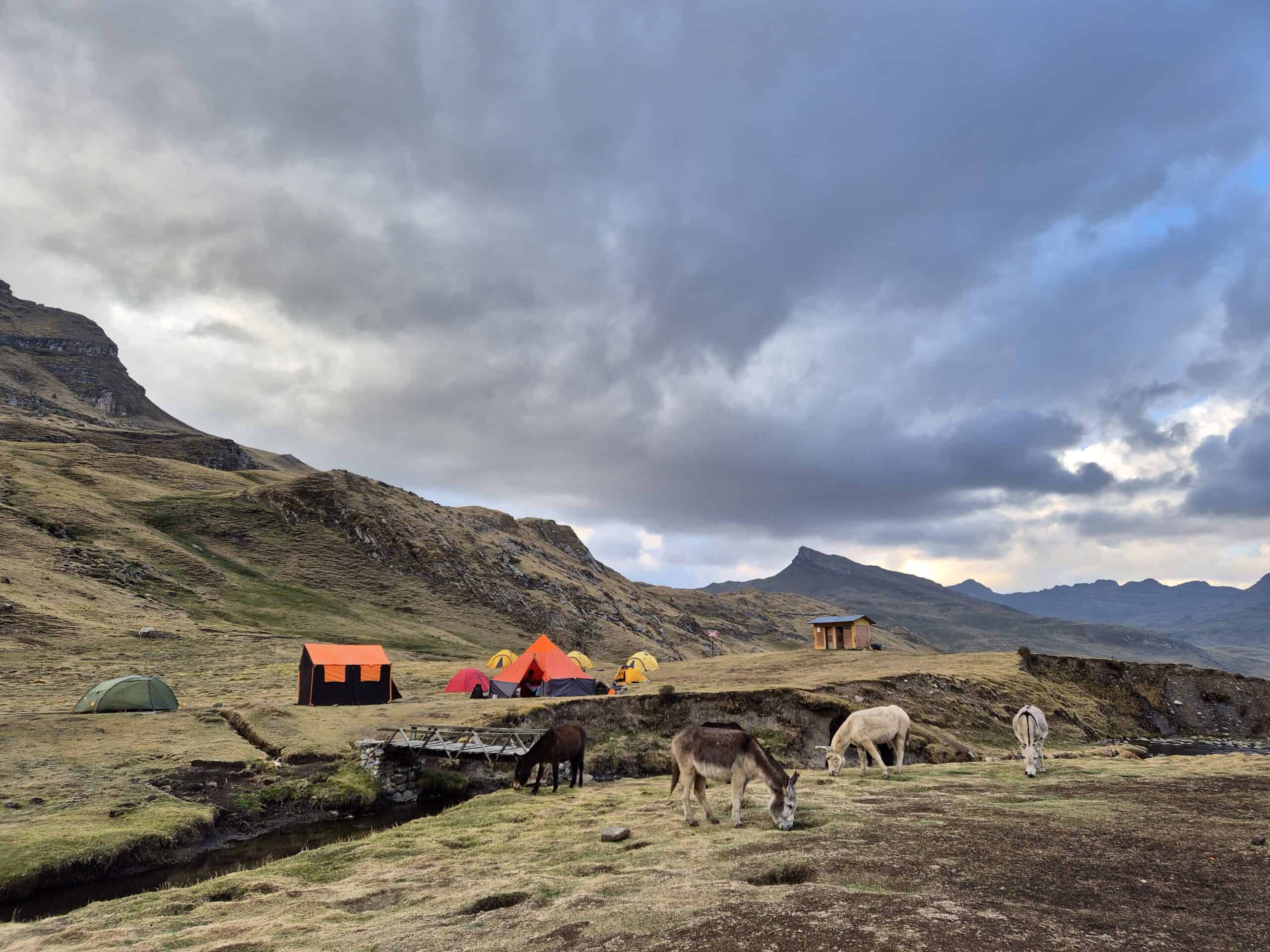 Tijdens de Huayhuash trekking zelf slaap je in tentenkampen op adembenemende locaties. Elke avond zet het team de tenten op aan de voet van besneeuwde toppen of langs kristalheldere bergmeren. Terwijl de zon achter de Andes zakt, warm je je handen aan een dampende kop thee en luister je naar het geklater van smeltwaterstromen. De nachten zijn fris, de sterrenhemel eindeloos. Dit is het pure bergleven – eenvoudig, echt en onvergetelijk.